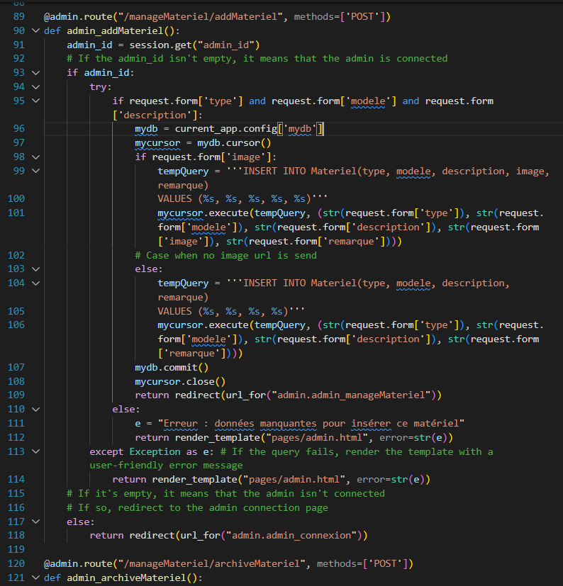 J'ai réalisé ce projet en équipe dans le cadre du cours d’architecture logicielle en 1ere année d’IMAC, dans l’objectif de créer un site de gestion de BDD en python/flask qui soit utile à l’association 803z. Lorsqu’il sera hébergé, notre site permettra aux étudiants d'accèder la liste du matériel disponible, et faire des réservations . Il permettra également la connexion des admins qui pourront alors gerer des réservations, modifier le matériel, supprimer des réservations... Notre application possède 20 endpoints différents.