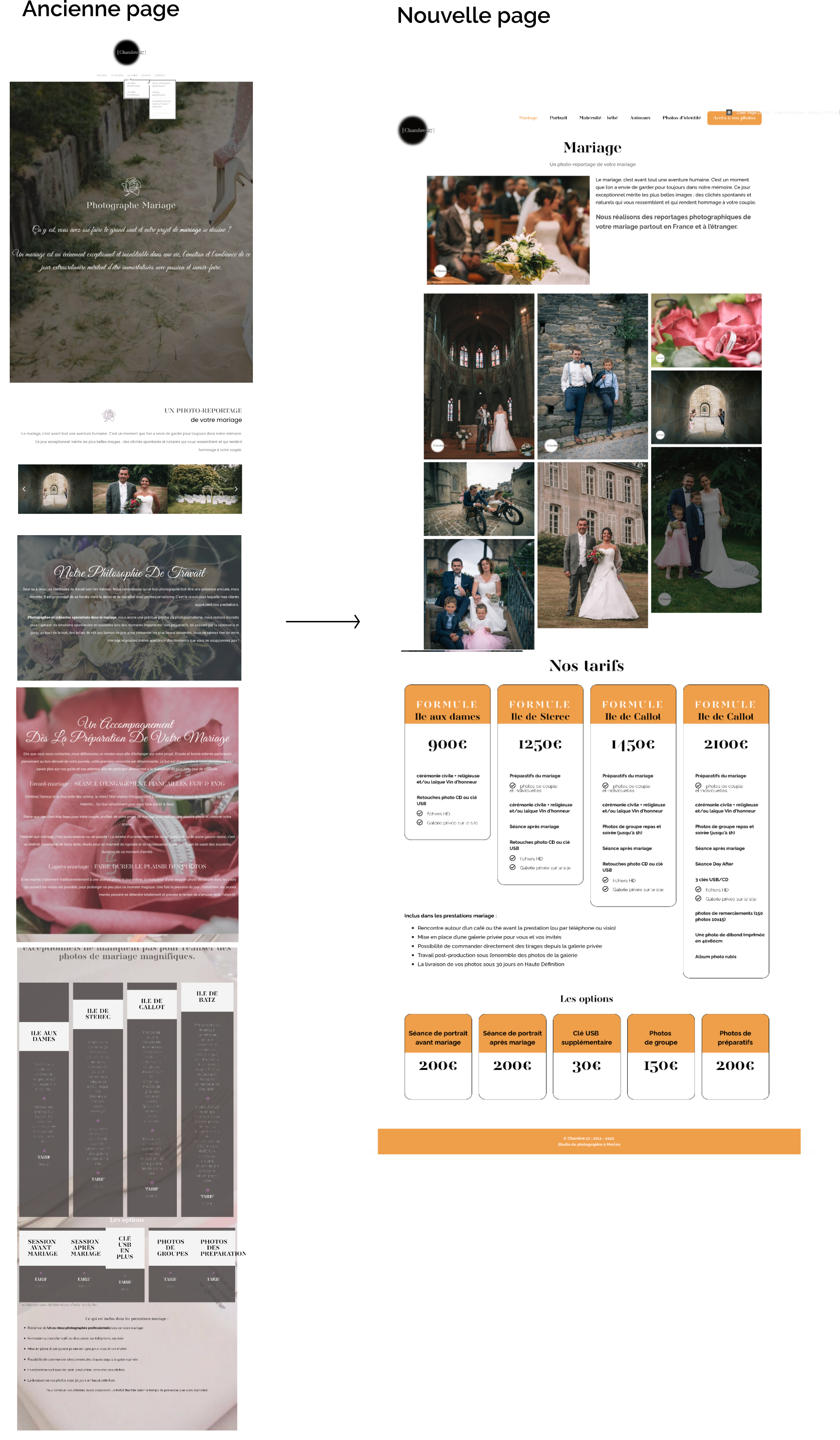 De mai à juillet 2022, j’ai réalisé un stage dans un studio et labo de photographie basé à Morlaix : Chambre 27. La refonte du site web de l’entreprise est une des missions que j’ai du réaliser durant ce stage. Après une veille de la concurrence, j'ai pu mettre en place une stratégie de communication ainsi qu'une nouvelle charte graphique pour le site. J’ai pu élaborer de nombreuses pages en améliorant le design, optimisant la structure globale du site, et en modifiant les contenus textuels et photographiques du site. Ce projet m’a permis de me perfectionner dans l’utilisation du CMS Wordpress ainsi qu'en création de contenus web.